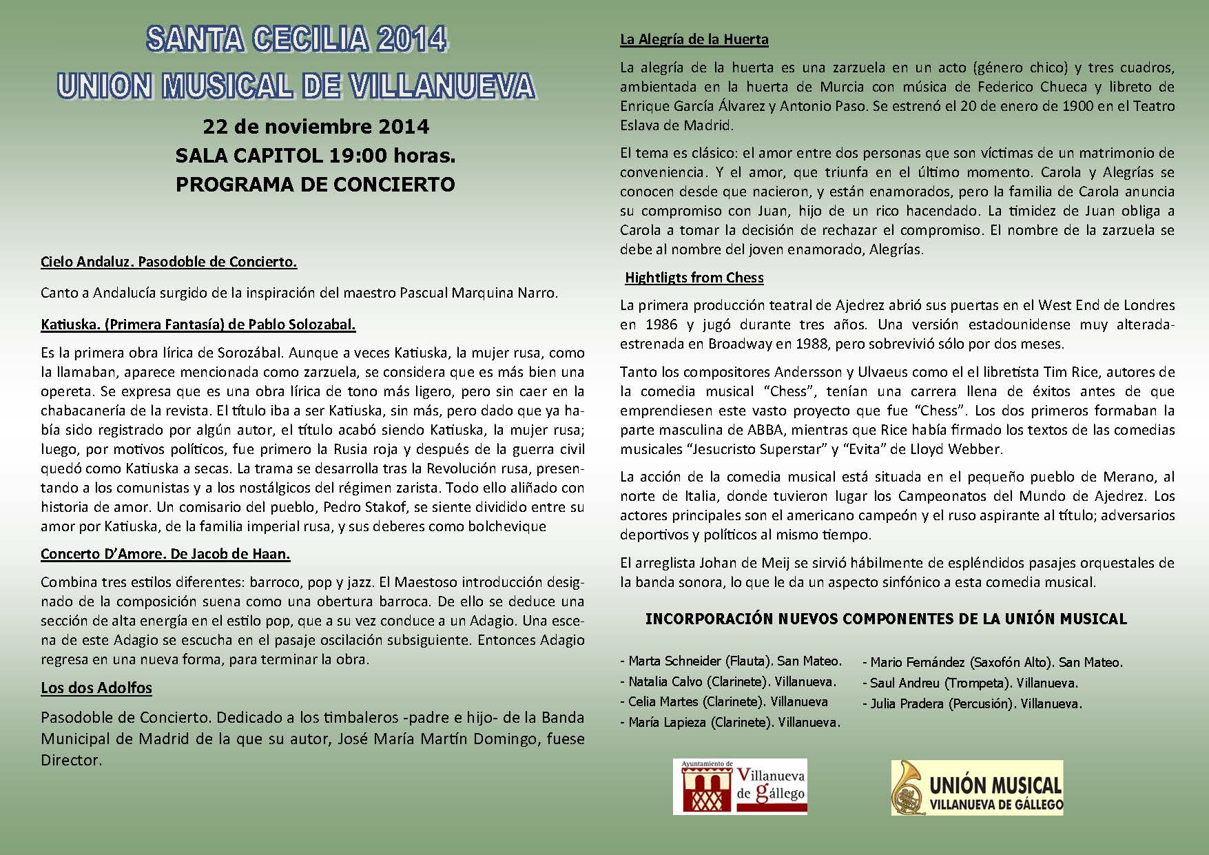 Programa de concierto Unión Musical el 22 de Noviembre de 2014